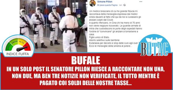 Ma anche la storia che gli anziani non vengano curati in Cina è un qualcosa che ci racconta Pillon, ma non trova riscontro nelle cronache. In Cina, a quanto riportano anche cronisti esteri, la popolazione, sempre più vecchia, è trattata con molto rispetto: