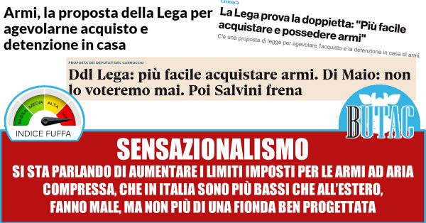 Con questo non vi sto dicendo che approvo o meno la proposta dei 70 deputati leghisti, onestamente io ho diritto al porto d’armi per difesa personale e non ne faccio comunque uso. Il punto è che su questa disinformazione (o mancata informazione) il lettore finale forma la propria percezione del mondo che lo circonda. Ognuno ha il diritto di avere la propria opinione, ma per formarsela bisogna che abbia in partenza dati corretti che lo informino sui fatti.