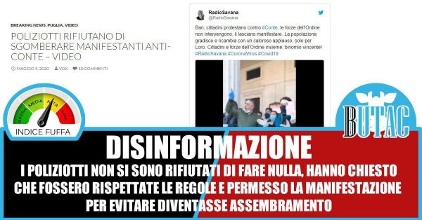 Su VoxNews e Radio Savana si racconta dell’inusuale reazione della polizia in occasione di una manifestazione a Bari, il titolo di Vox è: