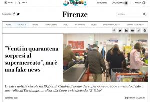 Il problema non sono i tweet, il problema è quando i quotidiani, quelli veri, cominciano a rilanciarla. Ad esempio Repubblica, che nella sua edizione di Firenze il 28 marzo spiega che si tratta di una fake news:
