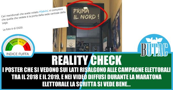 Quindi mi viene da azzardare che la foto che circola, bene o male, risalga a un periodo incluso tra marzo 2018 e oggi. Impossibile sapere se quella scritta sia davvero ancora lì bell’esposta, quasi a prendere in giro i tanti che pur non essendo italiani “del nord” hanno votato la Lega.