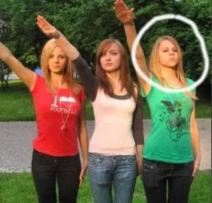 La foto delle tre ragazze che fanno il saluto romano in realtà circola da almeno dodici anni, su TinEye infatti se ne trovano versioni in poster Demotivational che risalgono al 2010, e fotomontaggi come quello di seguito, che risalgono al 2014: