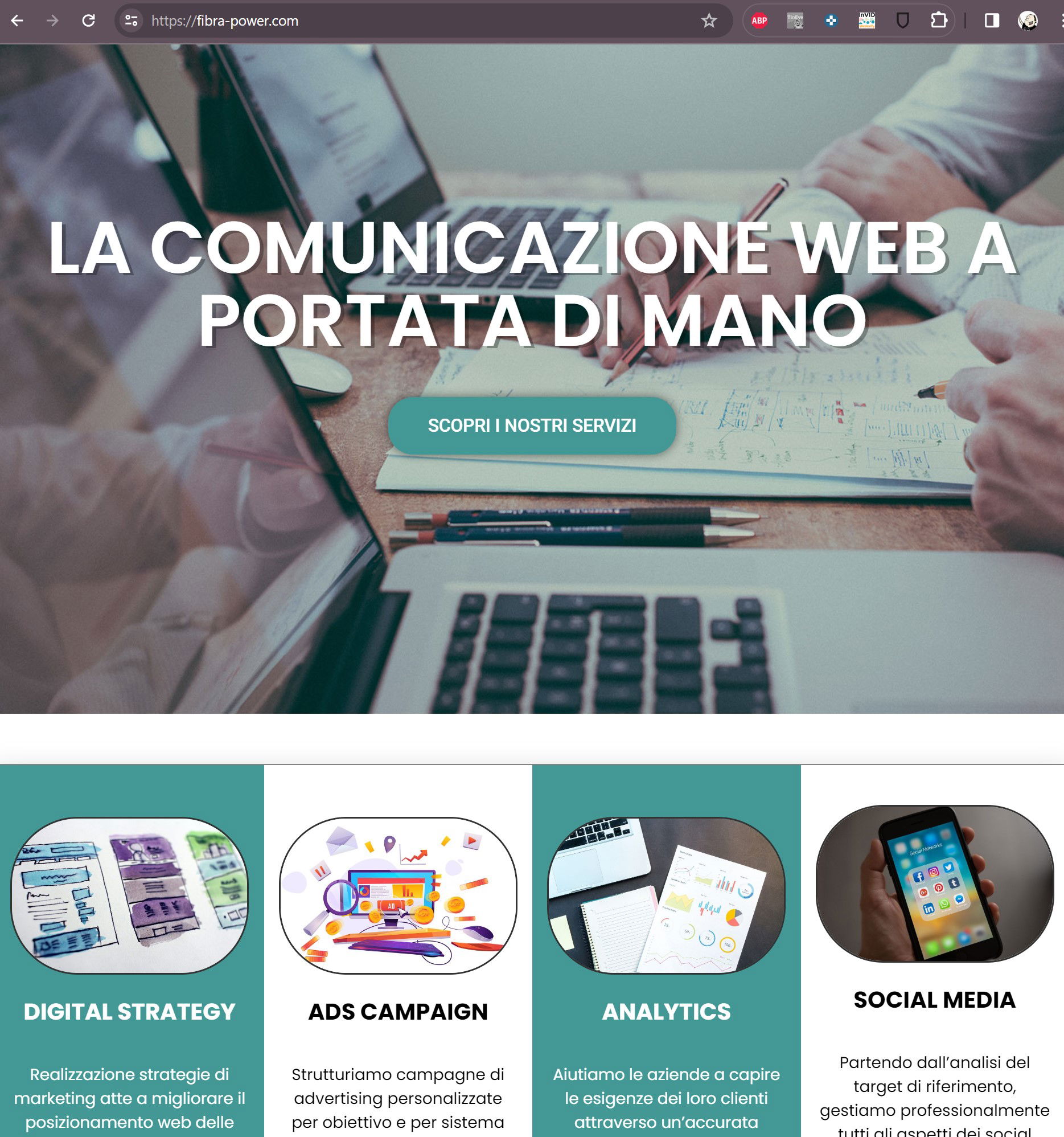Se andiamo sulla home page di Fibra-Power veniamo accolti così:
