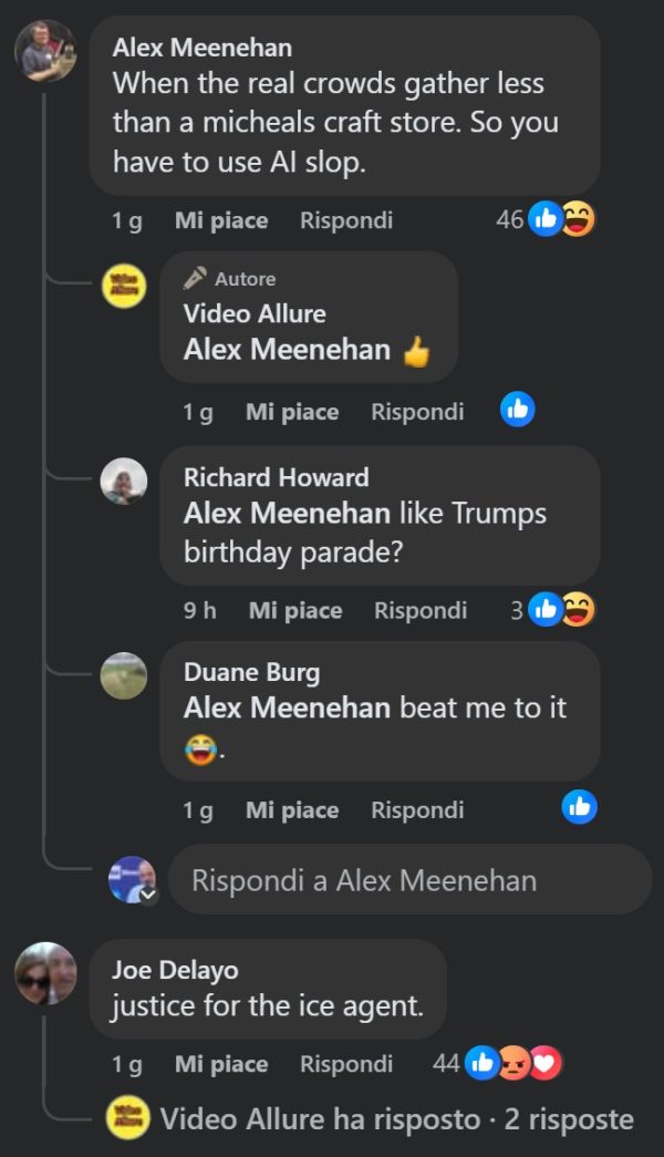 La morte di Renee ha fatto sì che nell’area – e non solo – cominciassero spontanee manifestazioni contro il governo in carica e contro ICE. Manifestazioni che sono state documentate da svariati media americani. Poi ci sono i social, dove da giorni stanno circolando video falsi, generati con l’intelligenza artificiale, che mostrano appunto proteste contro ICE.