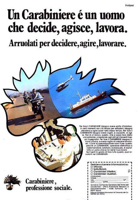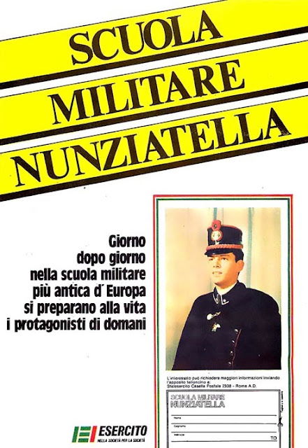 Esistono pubblicità simili anche in Italia, ed esistevano anche in passato. Ad esempio questa della Scuola Militare Nunziatella dell’Esercito Italiano, è su un Topolino del 1984: