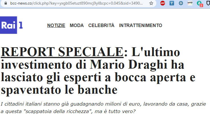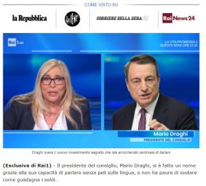Stavolta hanno fatto le cose in grande: usano come indirizzo web un bbc-news. co, come logo in alto quello di RAI1, e poi i faccioni di Mara Venier e Mario Draghi.