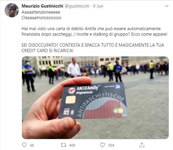 Aaaaattenzioneeeee Claaaaamorosooooo Hai mai visto una carta di debito Antifa che può essere automaticamente finanziata dopo saccheggi, / rivolte e stalking di gruppo? Ecco come appare! SEI DISOCCUPATO? CONTESTA E SPACCA TUTTO E MAGICAMENTE LA TUA CREDIT CARD SI RICARICA!