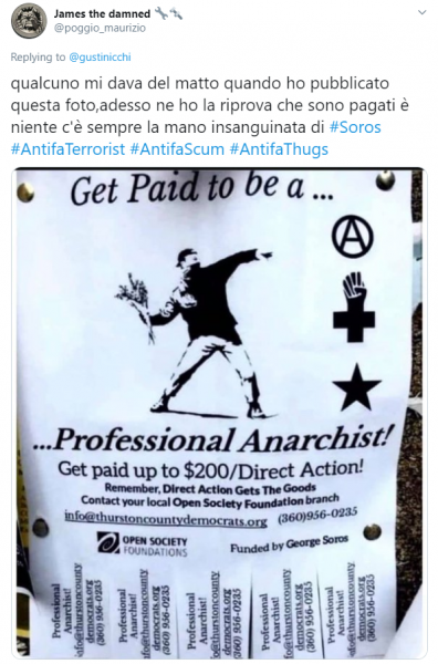 Il tweet di Gustinicchi è seguito da molti commenti indignati e da alcuni che condividono altre bufale varie su antifascisti pagati da Soros e compagnia cantante. Nulla di cui purtroppo mi sorprenda. Uno dei tanti commenti rimanda anche al sito originale da cui la cosa è partita, che trovate qui.