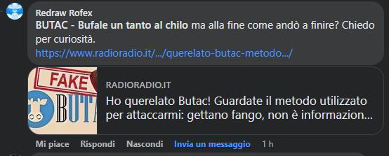 Domenica 6 febbraio sulla pagina Facebook di BUTAC sono arrivati in massa a commentare un articolo di due settimane prima, tutti arrivati grazie a un commento di Robby Giusti, influencer che su Facebook si definisce “La IENA BLU: Collabora con: Il Paragone.it, ByoBlu, La Redazione giornalistica Quotidiano La Pressa”. Il commento è apparso sotto al post con cui il 19 gennaio 2022 condividevamo l’articolo che potete trovare qui, dal titolo: