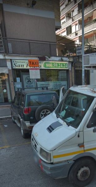 Nei post che mi erano stati segnalati per primi su Facebook l’unica cosa che si leggeva bene era l’insegna dietro al camion, non la scritta sullo stesso. Quella scritta TAXI e quel cartello posto sotto Onoranze Funebri e un numero di telefono ben chiaro: 800.59.24.24. Apro il mio motore di ricerca, cerco onoranze funebri e il numero di telefono e il primo risultato mi rimanda alle Onoranze Funebri San Pietro, in piazza Balsamo Crivelli 1 – 00159 Roma.