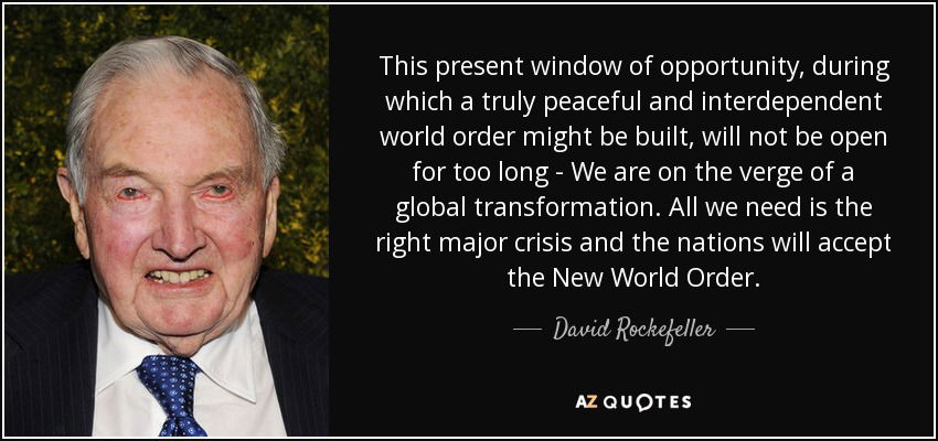 This present window of opportunity, during which a truly peaceful and interdependent world order might be built, will not be open for too long – We are on the verge of a global transformation. All we need is the right major crisis and the nations will accept the New World Order.