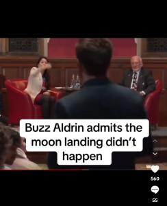 Ma il suo “it didn’t happen” si riferisce al momento più spaventoso, intendendo che per lui non c’è stato nessun momento di paura durante quella missione, e non quello che complottisti sostengono, cioè che non sia mai successo l’allunaggio di per sé.
