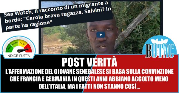 Nel video sentiamo le parole di Khadim Diop (spero si scriva così), 24enne senegalese, che a quanto ci raccontano era sulla Sea Watch di Carola Rackete. Nel video Khadim prima elogia il capitano Rackete, raccontando le discussioni con la Guardia Costiera libica, poi si arriva al punto chiave dell’intervista. Quello che per i tifosi di Matteo Salvini è la dimostrazione di quanto sia corretta la sua battaglia sui porti chiusi.