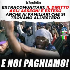 Se non fosse tragico verrebbe in mente la battuta di Totò “E io pago!”. Vi pare normale uno Stato che se ne frega di milioni di poveri italiani ma paga assegni ai parenti degli immigrati con le nostre tasse? E poi dicono che saranno loro a pagarci le pensioni…