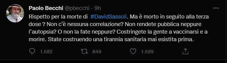 Un’informazione per i miserabili no-vax che stanno speculando sulla scomparsa di David Sassoli.