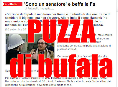 Il tutto a firma Antonello Impagliazzo! L’Espresso la pubblica (credo) in toto, senza commento alcuno, unendo alla lettera una foto tratta da Amici Miei e un’altra dello stesso Impagliazzo, senza però raccontarci che Antonello è un militante M5S, che ha in odio la Ka$ta e che è stato candidato al parlamento alle ultime elezioni (purtroppo per lui senza venire eletto)! Non ce l’ho coi 5stellati, ma la lettera che già mi sapeva di bufala avendo queste info aggiuntive mi puzza proprio tanto, oltretutto l’autore non è un giornalista de L’Espresso o de La Repubblica, quindi è solo una lettera di un privato cittadino, senza alcun riscontro che narri fatti realmente accaduti.