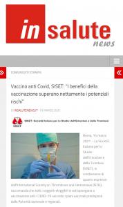 In realtà, l’articolo di “In Salute News” datato 15 marzo 2021 ha un titolo completamente diverso, che riguarda il vaccino anti-Covid. Questo: