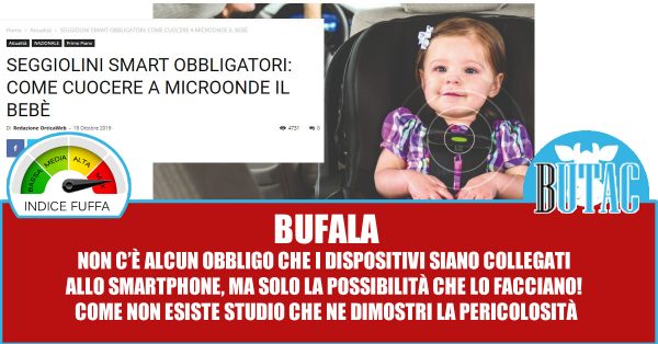 Sulle onde elettromagnetiche dei cellulari credo che su BUTAC ci siamo espressi più e più volte, non credo di dover tornare sul tema. Non sono come cuocere il bimbo a microonde. Sostenere questo è disinformare, evidentemente con un’agenda da seguire. Guarda caso l’articolo, dopo il primo allarmismo sui seggiolini, si lamenta che la mozione della deputata Sara Cunial, mirata a bloccare il 5G nel nostro Paese, sia stata respinta dal Parlamento.