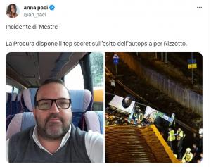 Una delle cose che hanno triggerato molti sostenitori delle teorie antivacciniste è il fatto che i risultati dell’autopsia effettuata sul corpo dell’autista del pullman sono stati messi “sotto segreto investigativo”. Ad esempio qui potete vedere il tweet di Anna Paci, già ospite dei salotti televisivi: