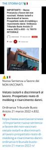 IMPORTANTE – Nuova Pronuncia a favore dei non vaccinati. Vietato isolarli e discriminarli al lavoro. Prospettato reato di mobbing e risarcimento danni.