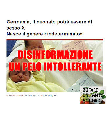 C’è una grossa notizia (disinformativa) che circola da agosto, ed è quella che narra come la Germania (come già l’Australia) abbia introdotto nella propria legislazione la possibilità di non inserire il genere sessuale di un neonato nei documenti di nascita.Quasi tutti (che siano quotidiani importanti o blog d’infimo livello) hanno tradotto il tutto in pochissime righe senza specificare nulla, quasi come se non avessero ben compreso di cosa si parlasse, alcuni invece hanno infarcito la notizia di puro odio anti “diversi”, con manifestazioni d’intolleranza esagerate.