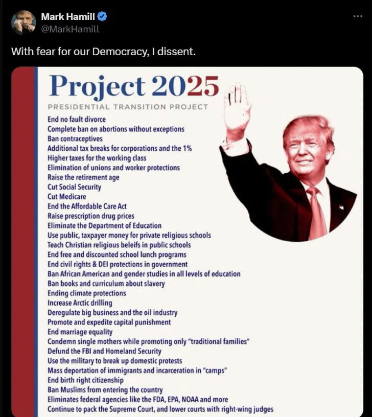 L’articolo, che porta la firma di Stuart A. Thompson e Tiffany Hsu, racconta di come – dopo anni di dominio delle bufale spinte dalla destra americana – in questo momento la disinformazione politica fatta a suon di bufale si sia diffusa anche a sinistra. Ad esempio il New York Times cita l’accusa, senza prove, che l’attentato a Trump sia stata una messinscena, o ancora Mark Hamill, noto in Italia per aver dato il volto a Luke Skywalker nella saga di Star Wars, che condivide sul suo profilo X un falso programma di intenti di Trump, dando a intendere ai suoi fan che sia vero e dicendosi spaventato per la democrazia…