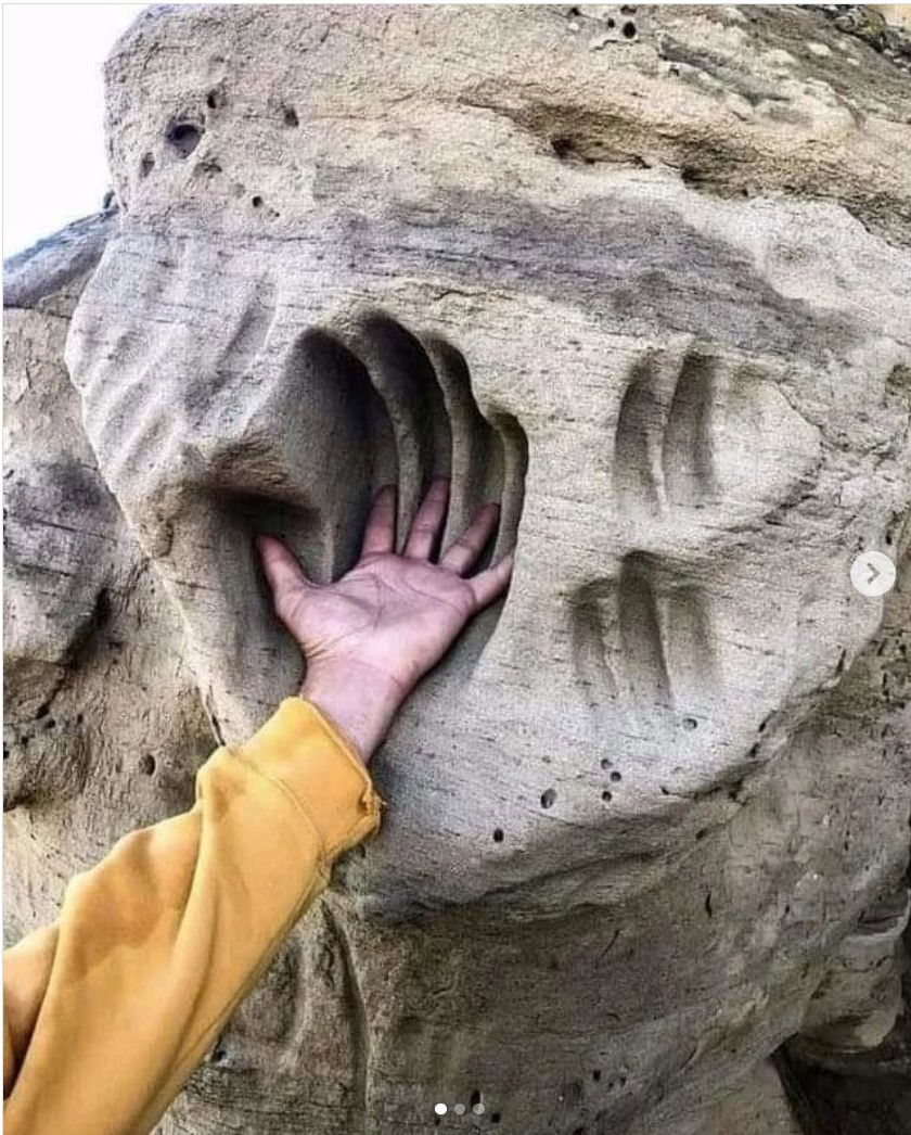 Non misteriosa perché riteniamo che sia fatta da un gigante, misteriosa perché non è chiara la sua provenienza: c’è chi parla del Paraguay, chi invece sostiene che provenga dalle montagne di Pirin in Bulgaria, l’unica cosa che però ci pare chiara è che non si trova in India e che non si tratta del calco di un’impronta di gigante. In questo caso, vista la posizione, l’ipotesi più probabile è che si tratti di roccia erosa dall’acqua a cui a un certo punto, a causa dell’erosione, si sono staccate delle parti. Il fatto che la stessa foto la si trovi su tantissimi siti di “controinformazione”, ma che non se ne trovi nessuna vera geolocalizzazione, fa pensare a uno scatto fortunato, fatto da qualcuno che faceva trekking chissà dove, e che da allora viene tramandato da fuffari di vario genere per portare avanti bislacche teorie.