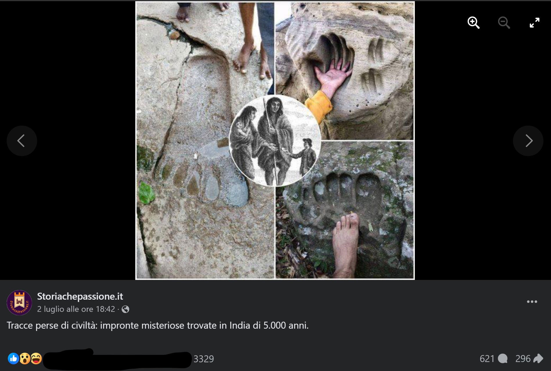 3 foto e il testo che le accompagna: Tracce perse di civiltà: impronte misteriose trovate in India di 5.000 anni.