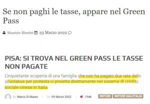 Poi controlla il Suo GreenPass (da tampone!!! Perché non avvelenata neppure Lei!) E SCOPRE CHE QUESTE DUE MULTE SONO SEGNALATE SUL SUO GREEN PASS! SIAMO GIÀ AL CREDITO SOCIALE DEGLI SCHIAVI, COME IN CINA!!! DIO INSORTO!!!