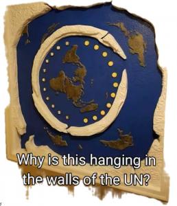 L’opera è bruttarella, e riporta quella che è – nell’immaginario complottista – la mappa della Terra piatta, con i muri di ghiaccio che la circondano e, fuori dai muri, altre terre sconosciute. Nel riquadro interno è possibile vedere abbastanza bene due serie di numeri dall’1 all’11, e se guardiamo con attenzione si vede un foro al centro, segno probabile che in origine si trattasse di un orologio a muro. Circola su TikTok come su Reddit, su Pinterest come su WhatsApp, e dal 2021 viene rimessa in circolazione costantemente.