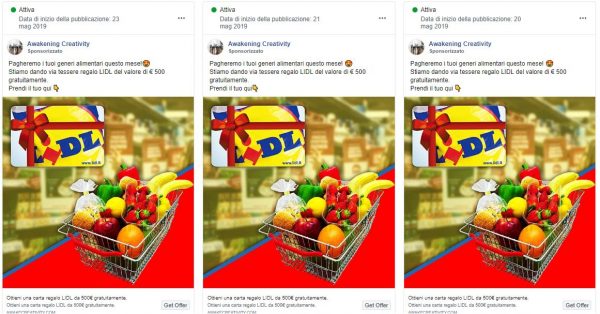 Il blog Awake Creativity, la relativa pagina Facebook e tutti gli altri siti su cui siamo portati a cliccare nel nostro peregrinare per 500 euro di sconto al supermercato fanno tutte parte della stessa rete spam. Non vi riporto i nomi delle aziende citate perché ho il grosso dubbio che anche loro non sappiano come vengono utilizzati i loro loghi e non ne abbiano colpa, esattamente come LIDL. Ma i social network devono stare più attenti a cosa viene permesso come pubblicità online. Queste sono vere e proprie catene per carpire i dati degli utenti. Statene alla larga.