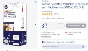 Veniamo a quanto ci riporta. È vero, la confezione da cinque tamponi della marca che ha comperato da DM costa € 3,75, proprio come dice: