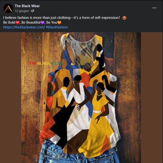 Nulla di diverso da quando a Natale su Facebook spuntano tutti quei post sponsorizzati di aziende finto-italiane che dicono che per colpa della crisi stanno chiudendo, anche lì si fa leva sullo stesso sentimento di appartenenza: non comprate da stranieri, venite da noi che sennò chiudiamo del tutto. Lo so, non si tratta di bufale, e neppure di truffe in questo caso, nel commercio “tutto” è lecito per farsi pubblicità. Quelli che sostenevano di essere italiani e che per crisi stavano fallendo stavano mentendo, qui non c’è nemmeno quello, nel Chi Siamo non dicono mai di essere appartenenti alla comunità, ma persone appassionate, vicine, che prendono ispirazione ecc. Giocano sull’equivoco, come quando in Home Page ci mostrano una foto stock con due coppie nere, e la scritta Start our business, dando a intendere appunto che quei quattro siano i fondatori o comunque ideatori del brand.