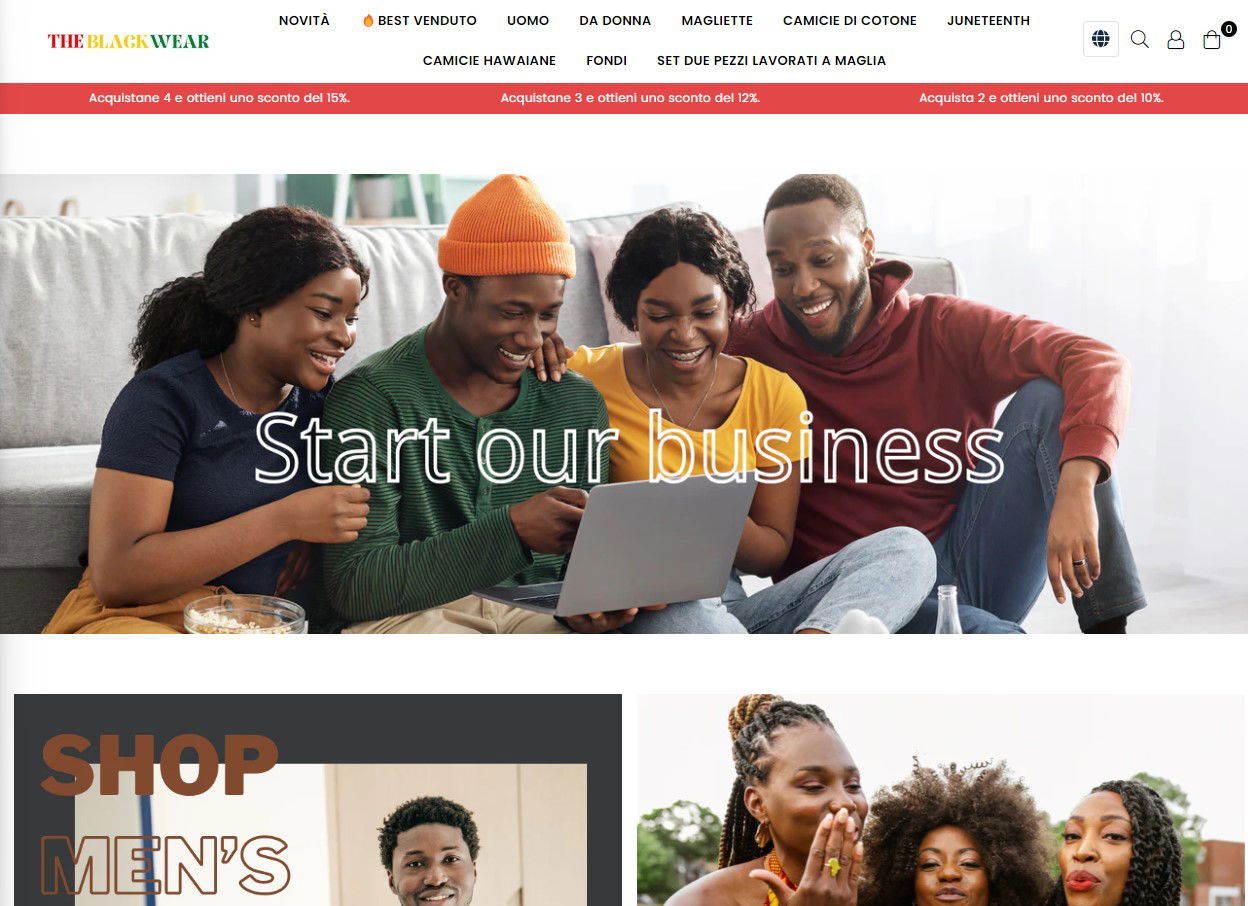 E la home page è chiaramente rivolta a persone nere, guarda caso il sito si chiama proprio The Black Wear, e se andiamo a leggere il Chi siamo sul sito troviamo questa descrizione: