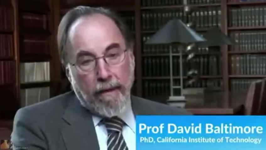 Si passa al secondo spezzone, che viene da un film realizzato dal negazionista Brent Leung (House of Numbers), sostenitore della teoria secondo cui l’HIV non esiste. Leung fa svariate domande trabocchetto al prof. David Baltimore, tra cui quella sull’isolamento del virus – ma parla dell’HIV, non del Sars-Cov-2. Baltimore, impacciato, non capisce la domanda, ma nel film risponde che non è stato lui a isolare il virus e quindi non capisce dove voglia andare a parare il regista Leung nel porgliela. Purtroppo è pieno di scienziati che cascano in queste trappoline, basta pensare al presidente dell’Ordine dei Medici di Roma che è andato ospite dei negazionisti di Radio Radio. Detto ciò Baltimore sta parlando di HIV, non Sars-Cov2.