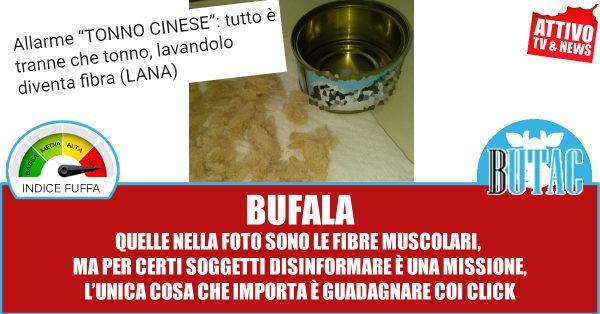 Avete capito che il creatore della bufala non rischia nulla, mentre chi ci è cascato potrebbe vedersi recapitare a casa una denuncia per diffamazione? Lo capite che tutti i blog e le pagine che hanno diffuso i video col tonno cinese sono complici? Bastava spendere 10 euro di tonno di varie marche per accorgersi che non c’è grande differenza tra uno e l’altro in termini di fibrosità.