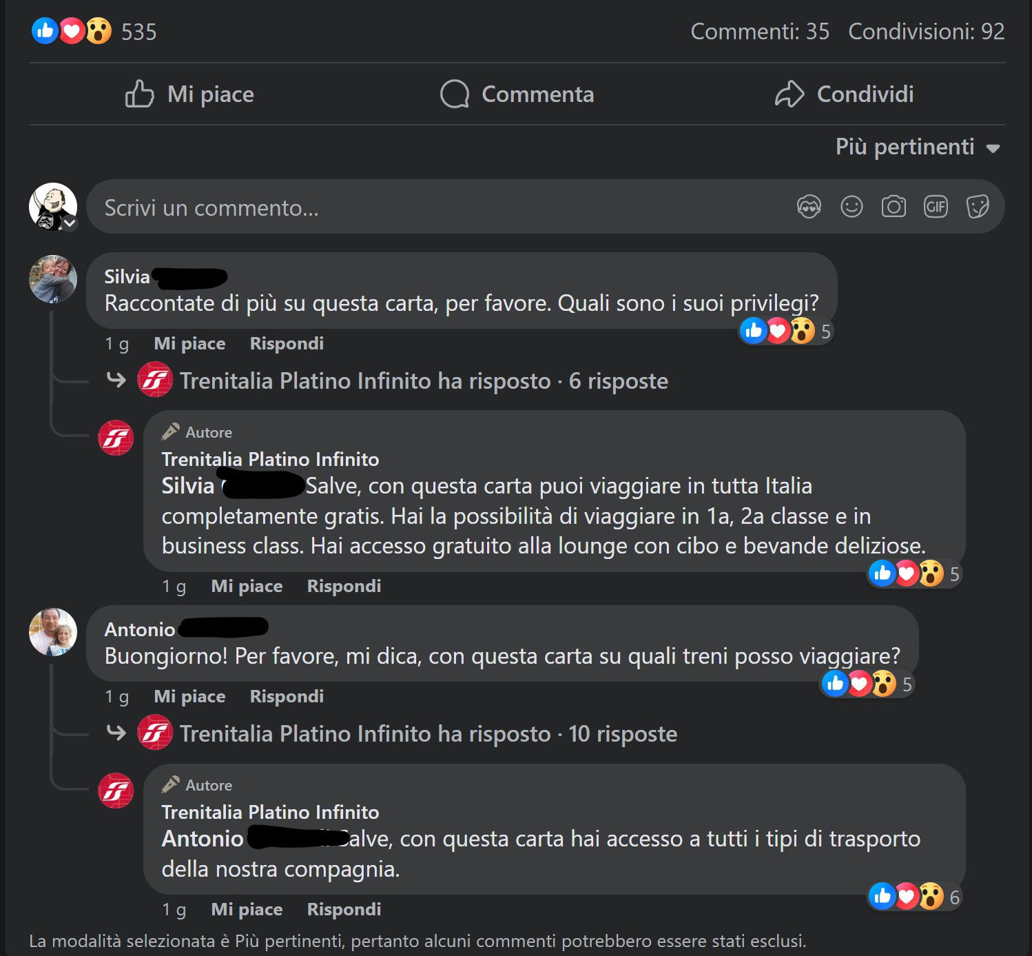 Si tratta di una truffa, ma come abbiamo già visto succedere ultimamente – a differenza dei soliti post rilanciati con delle sponsorizzazioni o poco più – qui stiamo assistendo a un nuovo livello di presa in giro dell’utente finale. Sotto al post difatti compaiono commenti, perlopiù da profili fasulli, ma anche veri e propri botta e risposta con gli admin della pagina, alias i truffatori, che ci tengono a evidenziare la bontà dell’offerta: