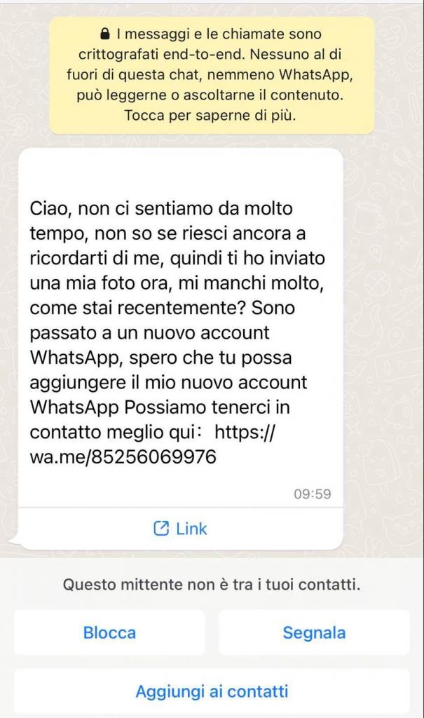 Il numero viene da Hong Kong e se accettate il contatto, spiegando che non sapete chi sia, è probabile che la persona dall’altra parte si scuserà per aver sbagliato numero, ma poi continuerà a scrivervi, sempre con toni gentili. La truffa si sviluppa in due modi, o in maniera abbastanza diretta o indiretta. In quella diretta, dopo qualche giorno vi manderà un messaggio in cui vi chiederà conto di un SMS che lei erroneamente ha fatto inviare a voi, voi glielo rimanderete senza leggerlo con attenzione, e lei prenderà possesso del vostro account WhatsApp, come già visto in precedenti occasioni. Oppure tra un messaggio carino e l’altro tenterà di convincervi a investire in trading online, con link a siti di quelli che voi che leggete BUTAC dovreste conoscere bene.