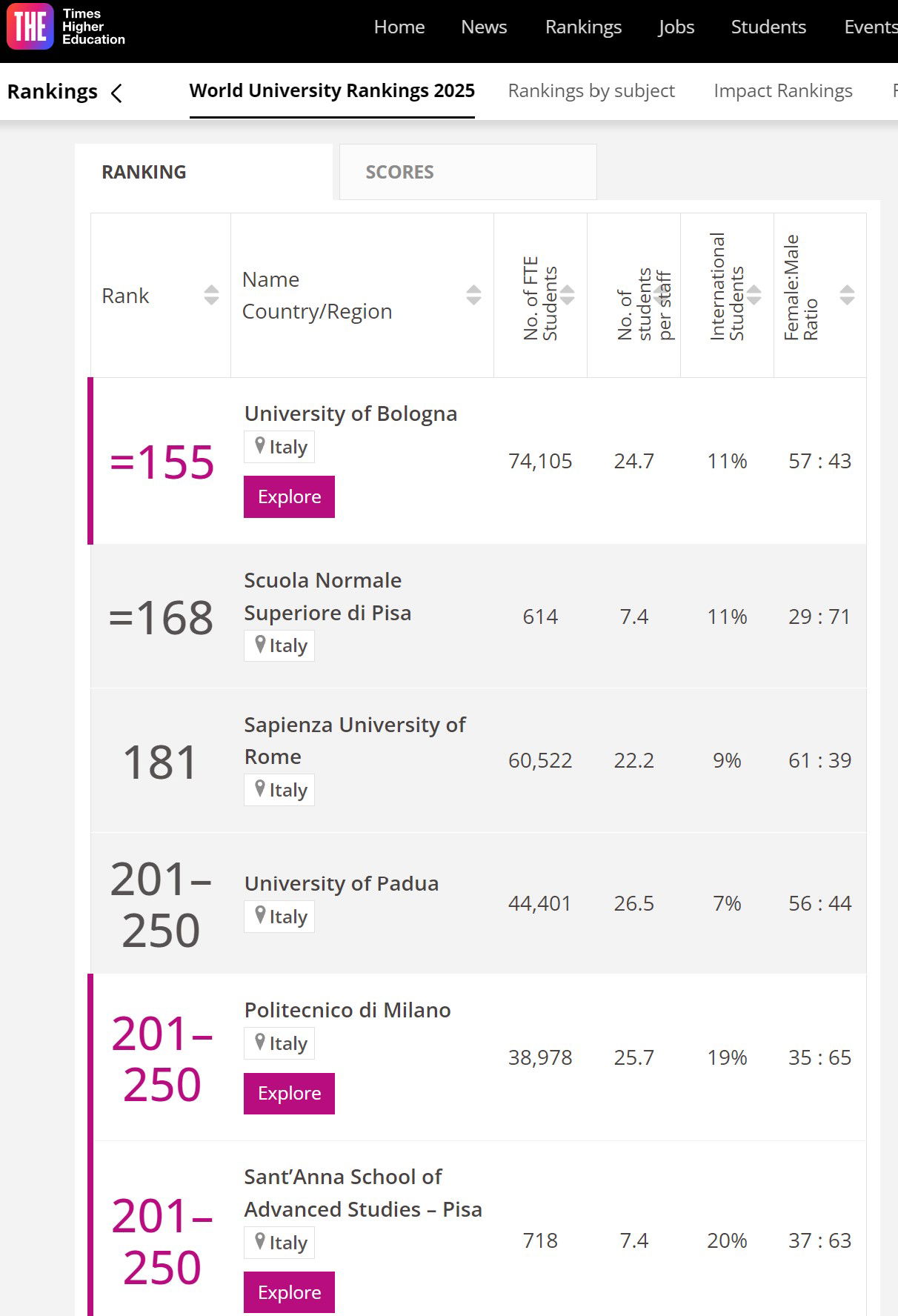 Però un’aggiunta a quanto detto va fatta, esistono molte classifiche dedicate alle università migliori nel mondo, quella citata da Bonaccini ci pare essere l’unica in cui Bologna è il primo ateneo italiano, in altre siamo dietro altri atenei del Belpaese.