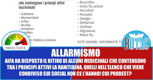 Ma non è affatto come ve la raccontano. L’AIFA ha disposto il ritiro o vietato l’uso solo dei farmaci che contengono ranitidina, l’elenco è pubblicato sul sito dell’AIFA e non comprende quanto riportato qui sopra.