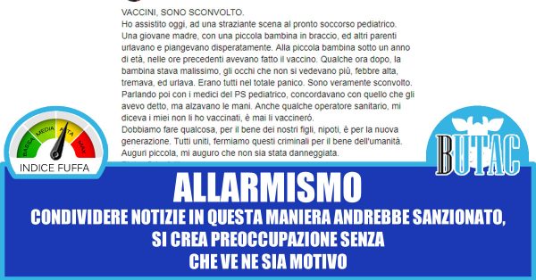 Una giovane madre, con una piccola bambina in braccio, ed altri parenti urlavano e piangevano disperatamente. Alla piccola bambina sotto un anno di età, nelle ore precedenti avevano fatto il vaccino. Qualche ora dopo, la bambina stava malissimo, gli occhi che non si vedevano più, febbre alta, tremava, ed urlava. Erano tutti nel totale panico. Sono veramente sconvolto. Parlando poi con i medici del PS pediatrico, concordavano con quello che gli avevo detto, ma alzavano le mani. Anche qualche operatore sanitario, mi diceva i miei non li ho vaccinati, è mai li vaccineró.