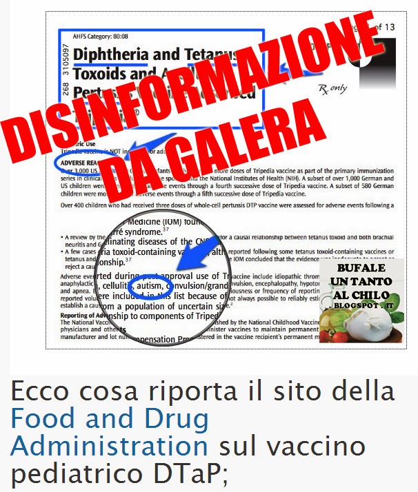 Insomma sembra che la FDA americana abbia “finalmente” deciso di raccontare “la verità” e abbia inserito nel bugiardino queste controindicazioni che collegano una volta per tutte autismo ai vaccini! Questo è quello che ci raccontano nell’articolo in questione…ma si tratta di BALLE, bugie, bufale, cazzate…mettetela come volete.