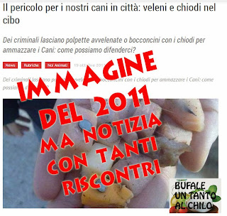 E cercando il web italiano si trovano tanti racconti a riguardo, non ho trovato vere denunce e l’articolo originale non cita casi specifici o zone dell’allarme, ma trovo comunque giusto ricordare a tutti che quando i nostri animali girano questi rischi ci sono, che siano chiodi, veleno, ma anche solo alimenti errati per i loro delicati stomaci…sempre fare attenzione, sempre prendersi cura di queste povere bestie che altro non hanno se non noi a curarle. Poco importa se quest’appello sia o meno vero (qualche dubbio continuo ad averlo, visto che le denunce sembrano copia e incolla e vengono sempre da comunicati stampa non precisati e sono per lo più pubblicate su siti di animalisti, o testate di scarso livello).