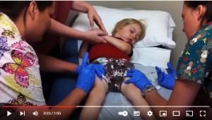 Nel video si vede un bambino tenuto da tre persone, con due delle persone che lo tengono sul lettino che procedono durante il video a fargli un totale di sei iniezioni. Il bambino, come è normale che sia, si lamenta un po’. Il video caricato sui gruppi Telegram vicini ai movimenti antivaccinisti sta circolando in Italia in bianco e nero (anzi, quasi un seppia) con una scritta in sovraimpressione che dice: