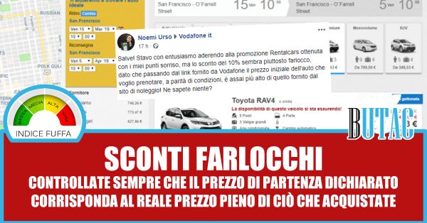Nel frattempo vi consiglio di stare sempre attenti a questi “sconti”, soprattutto se la possibilità di controllare il prezzo reale prima dello sconto non è semplice e immediata come in questo caso, visto che il browser mi reindirizzava in automatico al sito Rentalcars tramite l’url Vodafone e che ho dovuto cambiare browser per fare un semplice controllo.