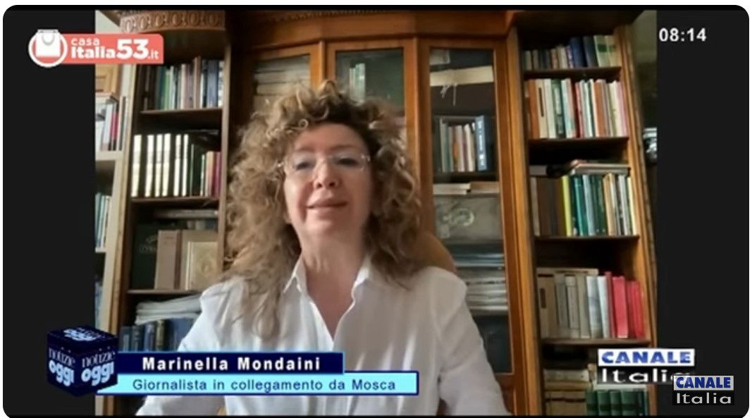 Leggendo nelle info sotto al video di Canale Italia leggiamo che si tratta di una scrittrice, giornalista e traduttrice che vive da anni a Mosca, e ascoltando l’intervento su YouTube scopriamo, con incredibile sorpresa, che difende l’operato di Putin. Ma noi Marinella l’avevamo già incrociata sul nostro percorso, e l’avevamo citata in due articoli riportando che: